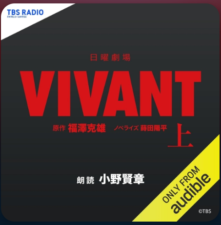 大ヒットした2023年のドラマVIVANTの小説版をaudibleで聴き直しました。堺雅人さんや阿部寛さんとは別の人が読み上げていますが、テレビで観たときの情景がよみがえってきて再び感動しました。面白いです。先日、続編の制作が決定したという報道がありました。テレビ放送されるのは2026年のようですが、今から楽しみです。